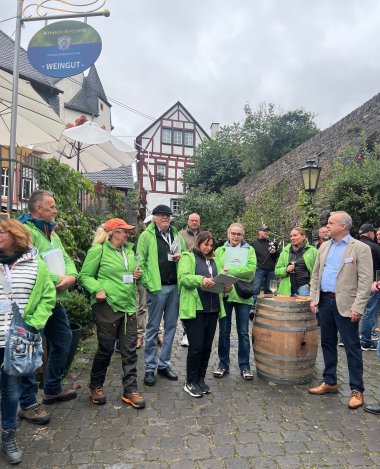 Nur wenige Tage später stand bereits die nächste große Etappe auf dem Programm: Die Landesjury reiste an die Mosel, um sich nach einer Begrüßung und Ortsvorstellung im Gemeindehaus bei einer ausführlichen Ortsbegehung ein Bild von Projekten, Ideen und der Entwicklung des Dorfes zu machen. Dabei präsentierten Vertreterinnen und Vertreter aus Vereinen, Wirtschaft und Gemeinderat die vielfältigen Maßnahmen, mit denen Ediger-Eller seine Zukunft gestaltet. Die Jury konnte sich beim zweistündigen Rundgang von der hohen Lebensqualität und dem starken Gemeinschaftsgeist vor Ort überzeugen.