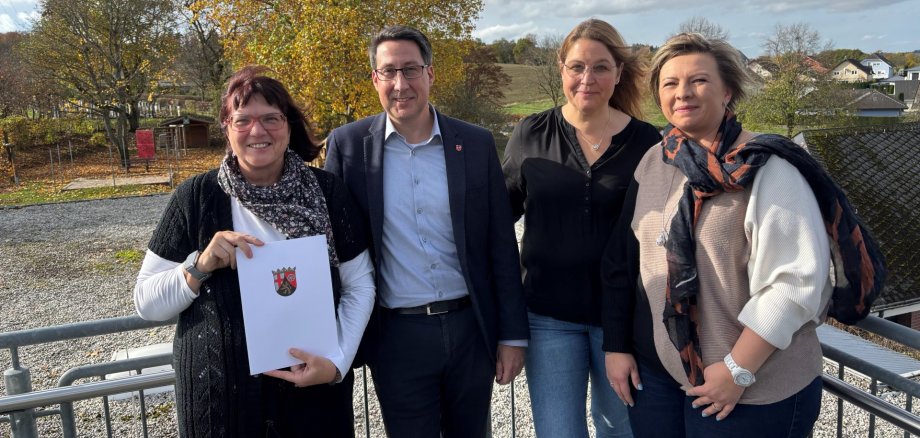 Als Zeichen der Anerkennung überreichte er Frau Klaus neben der Dankurkunde des Ministerpräsidenten Alexander Schweitzer ein kleines Präsent. Den Glückwünschen von Bürgermeister Hoffmann schlossen sich auch die Leiterin der Kindertagesstätte Sandra Knop sowie für den Personalrat Anna Brand an.